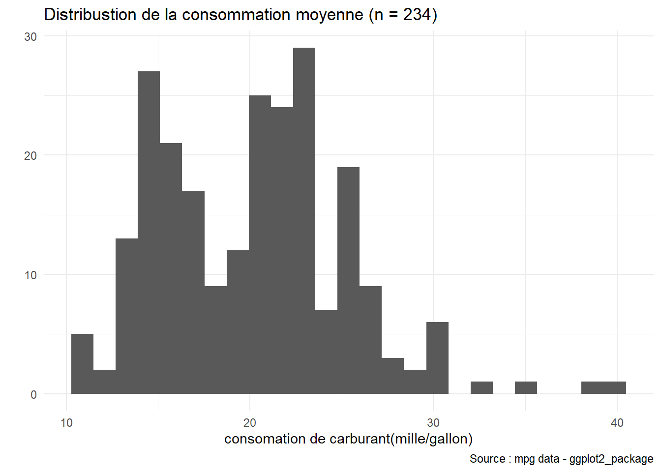 subtitle = "Distribustion de la consommation de carburant selon la cylindré",